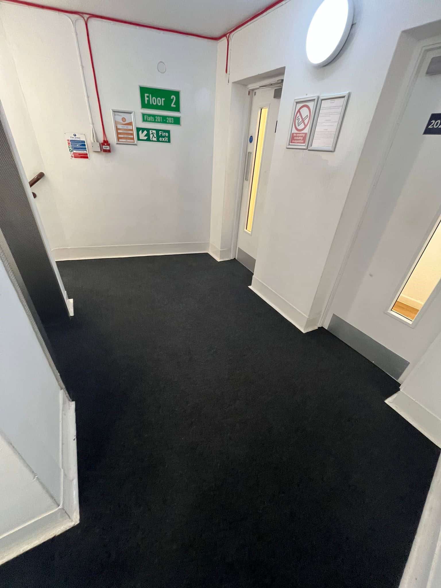 The refurbishment has transformed the stairwells at Landale House, providing a cleaner, safer, and more modern environment for residents. The new carpets and stair nosings not only improve the appearance but also enhance safety and longevity, delivering long-term value for the client.